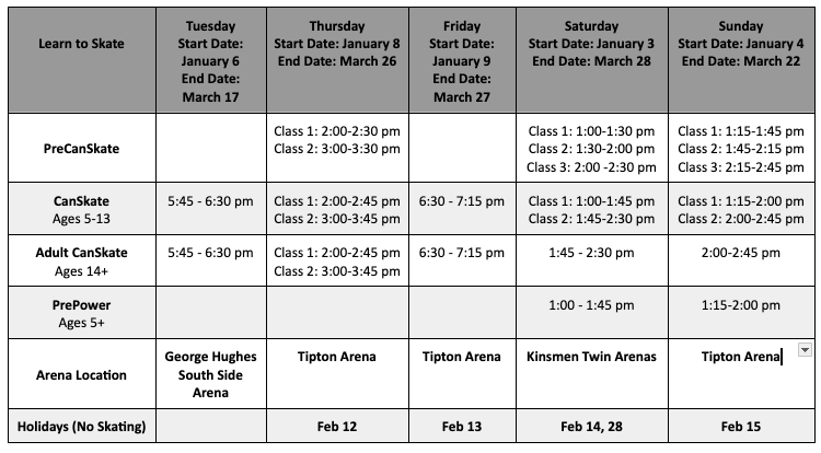Learn to Skate: Google Calendar Link, iCal Link